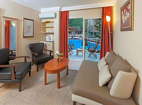 Surrounded by lush green forest, the attractive Julian Forest Suites is set back into the mountainside of Içmeler, enjoying a quiet, peaceful location. The resort centre is about 2.5 km away; the beach is within easy reach. There is a ferry connection to Marmaris all day long, and this town can also be reached within a short drive. Marmaris offers a wide range of shopping opportunities and a vibrant nightlife. The hotel offers elegant, modern suites, ideal for families thanks to separate living and sleeping areas. Features of the hotel include a large outdoor pool, a children's pool, various water slides, a children's club as well as a children's park. The à la carte restaurant serves Turkish, British and international cuisine and guests can enjoy a drink in the Forest Bar. The excellent spa and wellness area invites guests to unwind completely. This hotel is an ideal choice for couples and families with children looking for a tranquil and relaxing holiday venue.