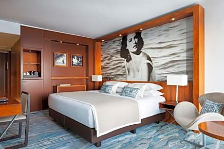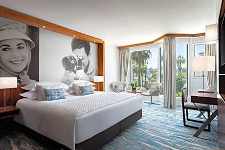 The JW Marriott Cannes welcomes you to Cannes, on the Boulevard de la Croisette, just 164 feet from the beach. This 5-star hotel offers a rooftop pool, a private partner beach, a casino and a shopping mall. Accommodations at the JW Marriott Cannes combine shades of cream and chocolate with the theme of the Film Festival. Each room has an LCD satellite TV, and some have balconies with views of the bay and the Lerins Islands. An American breakfast buffet is served every morning. Guests can enjoy traditional, upscale Italian cuisine at the famous Scalini restaurant. In the evening, the Sunset Terrace, offers a glass of champagne or a cocktail overlooking the sunset. Room service is also available daily, with a limited menu during the night. The JW Marriott Cannes features a 24-hour front desk with currency exchange services and a business center with Wi-Fi access. The hotel underwent a renovation in 2021. The JW Marriott Cannes is 19 mi from Nice-Côte d'Azur Airport and a 15-minute boat ride from Sainte-Marguerite Island. Private underground parking is available on site. This is the preferred neighborhood for travelers visiting Cannes, according to independent customer reviews. Couples particularly appreciate the location of this property. They give it a 9.5 rating for a two-person stay.