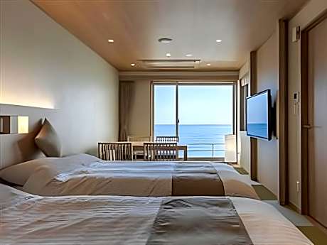 Experience an abundance of unparalleled facilities and features at Kamogawa Grand Hotel. Maintain seamless communication using the complimentary Wi-Fi at ryokan. Discovering Onjuku becomes even more accessible, thanks to the shuttle amenities provided at the ryokan.For visitors traveling by automobile, complimentary parking is available. During your stay at this fantastic ryokan, the attentive front desk personnel can provide you with a range of amenities such as concierge service, luggage storage and safety deposit boxes. During leisurely days and evenings, on-site amenities such as daily housekeeping enable you to fully enjoy your accommodation. Kindly note that smoking is prohibited in the ryokan to ensure fresher air for all visitors. For visitors wishing to smoke, designated smoking zones can be found. At Kamogawa Grand Hotel, every guestroom is provided with convenient amenities and fittings to ensure a comfortable stay. Elevate your experience at ryokan with the knowledge that certain rooms are equipped with air conditioning, ensuring a more pleasant stay for you. A few accommodations within Kamogawa Grand Hotel offer unique design elements such as a balcony or terrace.Certain rooms offer in-room amusement features such as the television for your enjoyment. In select rooms within the ryokan, a refrigerator, a coffee or tea maker, instant coffee and instant tea is available to cater to your requirements when desired.It is worth noting that certain guest bathrooms feature a hair dryer and toiletries for your convenience. Begin your day with a scrumptious on-site breakfast available each morning at Kamogawa Grand Hotel.Begin your day feeling refreshed and invigorated as you enjoy a delightful cup of quality coffee available at the cafe situated within the ryokan. At the ryokan, an assortment of easily accessible and delicious meal choices are available to satisfy your appetite whenever it strikes. Create unforgettable moments with your fellow voyagers just steps away, at ryokan's karaoke rooms and bar, for a delightful evening together. At Kamogawa Grand Hotel, guests can access vending machines that provide light snacks and beverages 24 hours a day.During your stay at ryokan, an array of engaging activities and amenities guarantees a delightful experience. Conclude your holiday perfectly with a visit to spa and sauna on your final days. Be sure to drop by the pool at ryokan at least once during your stay.