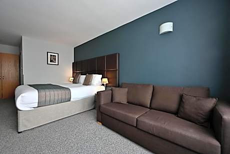 This quadruple room features a electric kettle, seating area and sofa.