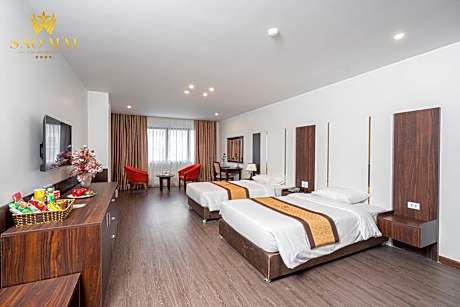 Great care is taken to ensure guests experience comfort through top-notch services and amenities. Remain linked during your visit by utilizing the complimentary internet access available.Experience the wonders of Thanh Hoá / Sầm Sơn Beach with ease by utilizing the services provided at taxi. The hotel offers complimentary parking for guests who arrive with their own mode of transport. Effortlessly plan your daily activities and travel requirements with concierge service, express check-in or check-out and luggage storage provided by the front desk services.Repeatedly enjoy your best-loved attire with the aid of the laundry service available at Khách sạn Sao Mai. During leisurely days and evenings, in-room amenities such as room service and daily housekeeping enable you to maximize your stay in the room.In limited designated zones, smoking is exclusively permitted. Crafted for coziness, every guestroom provides an array of features, guaranteeing a tranquil night's sleep while maintaining the level of comfort.For a more enjoyable stay, select rooms at hotel are equipped with linen service, blackout curtains and air conditioning. At Khách sạn Sao Mai, a selection of rooms can be found that showcase unique design elements such as a separate living room.Expand your in-room entertainment choices with various amenities, such as television offered in certain accommodations.Rest assured that your hydration needs will be met, as some guestrooms are equipped with a refrigerator, bottled water, instant coffee, instant tea and mini bar.Khách sạn Sao Mai offers a hair dryer, toiletries and bathrobes in the restrooms of specific accommodations. Begin your day on a delightful note with a scrumptious complimentary breakfast, consistently served at Khách sạn Sao Mai. Begin your holiday mornings right with your essential cup of coffee, offered daily at the cafe on-site.During your visit, indulge in a range of delightful culinary choices at hotel to enhance your experience.Experience a fantastic evening effortlessly! Relish an entertaining night without venturing beyond the confines of the bar.Do you possess exceptional culinary skills? Prepare your meals personally within the hotel at its shared kitchen. Indulge in the numerous pursuits available at Khách sạn Sao Mai. Treat and spoil yourself by stopping at massage, steam room, spa and sauna for a memorable experience. Begin your holiday perfectly by taking a plunge into the swimming pool.Eliminate those holiday calories by stopping by hotel and making use of their well-equipped exercise amenities.