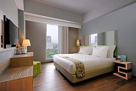 KHAS Semarang Hotel provides flawless service and all the necessary facilities for visitors. Stay connected with your associates, as complimentary Wi-Fi is available during your entire visit. To facilitate your arrival and departure, you can pre-book airport transfer services prior to checking in.The hotel offers taxi, car hire and shuttle amenities for your ease in navigating around Semarang.When arriving by car, you'll be grateful for the on-site complimentary parking at hotel.The hotel offers reception amenities including concierge service, luggage storage and safety deposit boxes to ensure a comfortable stay for guests.Whether it's an extended stay or simply needing fresh attire, dry cleaning service and laundry service provided by hotel ensures your cherished travel garments stay spotless and accessible. Your stay will be comfortable with the presence of 24-hour room service, room service and daily housekeeping as an in-room amenity for your relaxation and enjoyment.To ensure the well-being and convenience of all visitors, smoking is strictly prohibited throughout the entire hotel. Smoking is permitted solely in the specified smoking zones allocated by hotel.In order to ensure the utmost level of relaxation, the guestrooms feature an inviting design and are equipped with all basic necessities, creating a delightful stay experience.To ensure a pleasant stay, a selection of rooms at hotel come furnished with linen service, blackout curtains and air conditioning, all designed with your ease in mind. Selected rooms offer in-room amusement like television as a source of entertainment for guests to enjoy.Within specific rooms, a refrigerator, a coffee or tea maker, bottled water, instant coffee, instant tea and mini bar is conveniently available for your use.You'll be pleased to know that select guest bathrooms offer bathroom amenities such as toiletries, ensuring a comfortable stay. Start your day stress-free at KHAS Semarang Hotel as breakfast is made available for you on the premises. How about kicking off each day of your getaway with a delicious cup of coffee? At the hotel, relish in the invigorating taste of a freshly brewed, excellent coffee.Various excellent meal offerings at hotel ensure that enticing and easily accessible options are constantly available. Visitors with specific dietary preferences can savor a variety of culinary styles at KHAS Semarang Hotel, featuring halal choices to accommodate their needs. Upon your arrival, don't miss experiencing bar for enjoyable in-house evening entertainment.Visitors wishing to create their personal culinary delights will appreciate the on-site shared kitchen provided at this establishment. Throughout the day, engage in the entertaining activities available at KHAS Semarang Hotel. Unwind by the pool at hotel and cherish a leisurely moment.