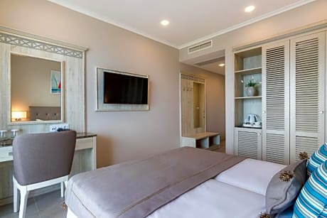 Located in Maronia, 28 miles from Casino Thraki, King Maron Wellness Beach Hotel provides accommodations with a seasonal outdoor swimming pool, free private parking, a fitness center and a garden. This 4-star hotel offers a shared lounge, room service and free WiFi. Guests can use the spa and wellness center with a sauna, hot tub, and hammam, as well as a private beach area. The hotel will provide guests with air-conditioned rooms with a desk, an electric tea pot, a fridge, a safety deposit box, a flat-screen TV, a terrace and a private bathroom with a shower. King Maron Wellness Beach Hotel has certain units with sea views, and every room comes with a balcony. All guest rooms include a closet. Guests at the accommodation can enjoy a buffet or an American breakfast. At King Maron Wellness Beach Hotel you'll find a restaurant serving Greek, Mediterranean and International cuisine. Vegetarian, vegan and gluten-free options can also be requested. The hotel has a playground. Guests can enjoy playing table tennis and tennis, or take advantage of the business center. Staff speak German, Greek and English at the reception. Porto Lagos is 28 miles from King Maron Wellness Beach Hotel, while Cave of Maronia is 2.5 miles from the property. Alexandroupoli Airport is 37 miles away, and the property offers a paid airport shuttle service.
