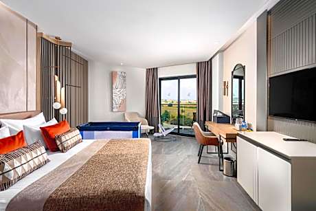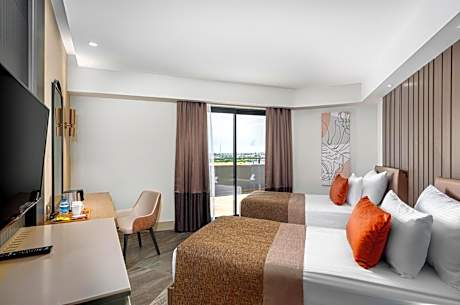 Located in Side, a 9-minute walk from Kumkoy Beach, Calyptus Kirman Premium - Ultra All Inclusive has accommodations with an outdoor swimming pool, free private parking, a fitness center and a garden. Featuring a kids' club, this property also welcomes guests with a restaurant, a water park and a terrace. The property provides a 24-hour front desk, airport transportation, a shared lounge and free WiFi throughout the property. The hotel will provide guests with air-conditioned rooms offering a desk, an electric tea pot, a minibar, a safety deposit box, a flat-screen TV and a private bathroom with a shower. All rooms have a closet. A buffet, continental or Full English/Irish breakfast is available at the property. Calyptus Kirman Premium - Ultra All Inclusive offers 5-star accommodations with a sauna and hammam. Green Canyon is 15 miles from the accommodation, while Aspendos Amphitheatre is 18 miles from the property. Antalya Airport is 41 miles away.