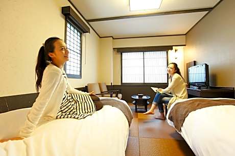 The double room features a sofa and heating, as well as a shared bathroom featuring a hairdryer. The double room provides air conditioning, tatami, a safe deposit box, an electric kettle, as well as a flat-screen TV. The unit offers 1 bed.