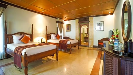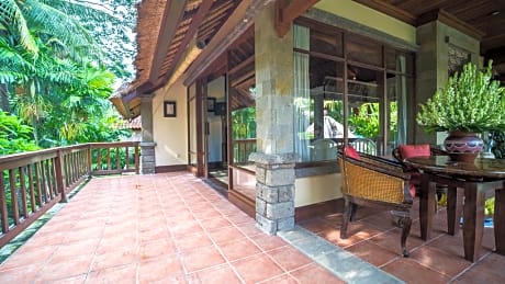 Nestled within a lush garden, this family-friendly hotel offers excellent facilities where guests can relax in a spacious, luxurious and cosy environment. The rooms are designed in a combination of traditional Balinese styles, infused with modern furniture and completed with a wooden balcony area overlooking the rice terraces or the gently rolling green fields. The open-air large swimming pool is the ideal place for a refreshing early morning swim or for lazing around during the day and working on that healthy tan. Those who want to explore the area can use the bike hiring service and visit the attractions that are scattered around Ubud. When the time for dinning comes the onsite restaurant can offer delicious traditional and international dishes and pleasant atmosphere where to spend the balmy evenings.