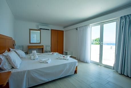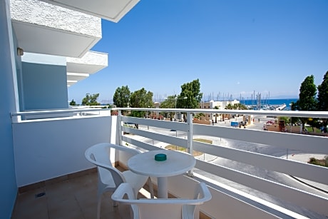 The beachfront Kos Bay Hotel is right in the center of Kos Town and across the new Marina, just a 10 minute walk from the port. It features a lounge bar with satellite wide-screen TV and air-conditioned rooms with free Wi-Fi and private balcony overlooking the Aegean Sea or the mountains. Bright and airy, the rooms at Kos Bay feature tile floors and are simply decorated with wood furnishings. Each unit has a direct dial telephone and a satellite TV. Air conditioning, electric kettle and fridge are standard. Continental breakfast is served each day in buffet style. Later through the day, the lounge bar serves alcoholic drinks and refreshing beverages. On the ground floor, there is a 24-hour front desk with safes available for rental. Car and bike rentals can be arranged by the staff. Taxi service is provided upon request. Kos Marina, beach awarded with a blue flag, is easily reached, just 100 yards away. Kos Bay Hotel is conveniently situated 65 ft from the bus stop. Restaurants, bars, shops and mini markets are a 2 minute walk away. Kos port is just over a quarter mile from the hotel.
