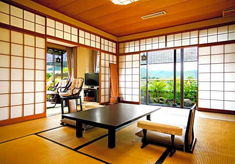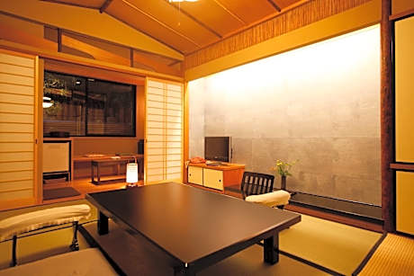 Kyoto Arashiyama Onsen Ryokan Togetsutei Togetsutei-Syuzankaku offers Japanese-style rooms with private bathrooms and mountain views. Local breakfast and dinner are served. Free Wi-Fi is available in the lobby. The hotel is located alongside Katsura River and is a 5-minute walk from Togetu Bridge and Arashiyama Station. Iwatayama Monkey Park is a 10-minute walk, and Tenryuji Temple is a 10-minute train ride away. Toei Kyoto Studio Park is a 20-minute train ride. Rooms at Onsen Ryokan Togetsutei-Syuzankaku feature tatami-mat flooring and traditional futon bedding. Some rooms come with a private outdoor hot spring bath. Guests can relax with a massage, or make use of the sauna. Souvenirs are available at the gift shop. Ryokan Togetsutei-Syuzankaku provides a safety deposit box and luggage storage area for its guests. It also provides free parking.