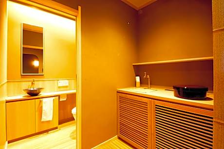 The quadruple room provides air conditioning, tatami, as well as a private bathroom featuring a bath and a shower. The unit offers 4 futons.