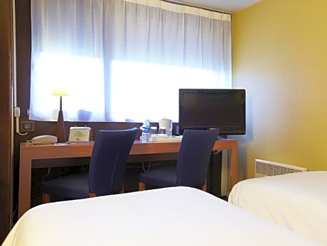 The Kyriad Angers Sud, located just a few miles from the center of the city, provides quality comfort for an affordable rate. Angers is a charming town with a rich heritage. It is known for its castles, fine food and famous vineyards. All of the functional guest rooms have bathtub and shower, cable TV and free Wi-Fi internet access. Wheelchair accessible rooms are available upon request. The restaurant serves breakfast, lunch and dinner and includes an appetizer buffet. During the summer, guests can choose to dine on the terrace. Enjoy a buffet breakfast to start your day or delicious regional cuisine in the evening. The enthusiastic team at the Kyriad Angers Sud Ponts-De-Cé is dedicated to making your stay enjoyable and comfortable.