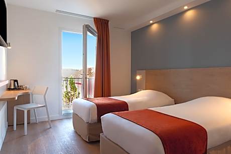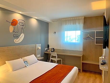 Kyriad Montpellier Ouest - Saint Jean De Vedas offers top-notch services and amenities, ensuring guests experience utmost comfort. Share your photos and respond to emails at your convenience, thanks to the free Wi-Fi internet access offered by hotel. Taxi offerings at the hotel enhance the ease of discovering Montpellier. Visitors can take advantage of complimentary parking directly at the hotel. Reception services such as concierge service and express check-in or check-out are available to accommodate your requirements.Traveling with minimal luggage is achievable at Kyriad Montpellier Ouest - Saint Jean De Vedas due to the hotel's laundry service ensuring your garments stay fresh. Room amenities feature room service, allowing you to unwind and make the most of your visit.The hotel maintains a completely smoke-free zone, providing a breathable atmosphere.Smoking is limited to specified smoking zones. Each accommodation at Kyriad Montpellier Ouest - Saint Jean De Vedas is thoughtfully created and adorned to provide visitors with a comfortable, home-like atmosphere.In certain rooms, the hotel offers blackout curtains and air conditioning for guest convenience and satisfaction.In select rooms, guests can enjoy a touch of amusement with the availability of television for their entertainment.Maintain your cleanliness and comfort using a hair dryer and toiletries available in select guest restrooms. Embark on your holiday experience in the most ideal manner. Commence each morning of your visit with an on-site breakfast.Experience the delight of a fresh morning by savoring excellent coffee at the cafe situated within hotel.Experience an unforgettable evening with your fellow travelers just a short distance away, at hotel's bar. For those who prefer savoring meals within their personal space, Kyriad Montpellier Ouest - Saint Jean De Vedas offers the convenience of doorstep grocery delivery, allowing you to prepare and enjoy food in your room.
