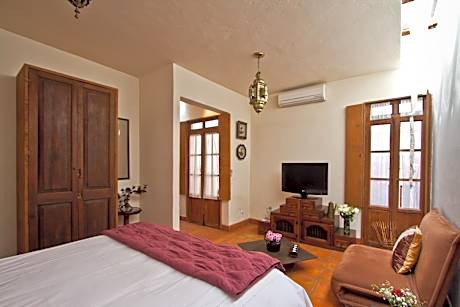 La Casa del Naranjo Hotel Boutique in Querétaro provides adults-only accommodations with an open-air bath, free bikes, and a terrace. This 4-star bed and breakfast offers luggage storage space and a concierge service. The accommodation features a hot tub, free Wifi throughout the property, and full-day security. The bed and breakfast will provide guests with air-conditioned units with a wardrobe, a safety deposit box, a flat-screen TV, and a private bathroom with a shower. At the bed and breakfast, all units are allergy-free. At the bed and breakfast, each unit is fitted with bed linen and towels. À la carte and American breakfast options with warm dishes, local specialities, and fruit are available. There is an on-site bar. Sightseeing tours are available in the neighborhood. Queretaro Congress Center is 4.3 miles from the bed and breakfast, while San Francisco Temple is a 5-minute walk away. Querétaro International Airport is 14 miles from the property, and the property offers a paid airport shuttle service.