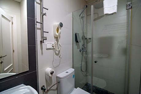 The triple room features air conditioning, a wardrobe, as well as a private bathroom boasting a shower and a hairdryer. This triple room has an electric kettle, heating, a flat-screen TV and an inner courtyard view. The unit has 2 beds.