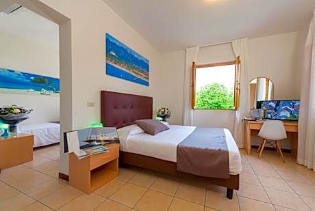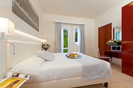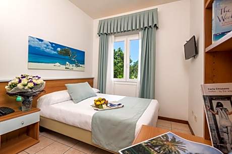 Hotel La Pace is just what its name suggests: a hotel with large, tranquil gardens where you can relax in peace and quiet. The sea is 656 feet away. Sit out on the sun loungers provided on the hotel’s shaded garden while the kids have fun in the play area. Walk to the beach in just 2 minutes, or take one of Hotel La Pace’s bikes out and explore Versilia. Forte dei Marmi town center is also just 164 feet away. This charming hotel provides rooms with spacious, modern bathrooms. Rooms all come with satellite television and air conditioning. Downstairs in the lobby you can make use of Hotel La Pace’s free internet point, and Wi-Fi is free of charge. Relax in the TV or reading room or enjoy a refreshing drink in the American bar. Hotel La Pace’s restaurant serves hot and cold buffet lunches, and dinners with set menus. Enjoy simple, genuine cuisine inside or out on the terrace in the garden.