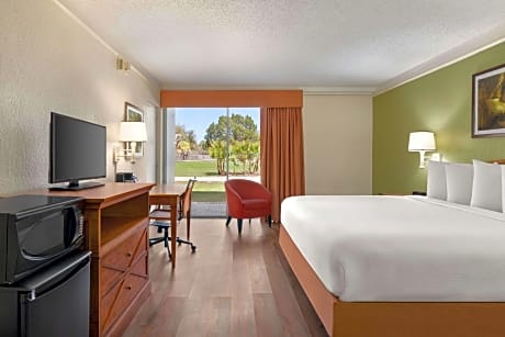 Baymont by Wyndham Daytona Beach - Intl Speedway is 0.9 mi from Daytona International Speedway. Guests can start their day with a complimentary breakfast and then take a dip in the pool. Complimentary WiFi is provided for all guests. A flat-screen cable TV and ironing facilities are found in each simply decorated room at the Baymont by Wyndham Daytona Beach - Intl Speedway. Rooms are equipped with ironing facilities and a hair dryer. Select rooms feature a microwave and refrigerator. Guests can take advantage of the on-site launderette. Daytona Beach and the shores of the Atlantic Ocean are 15 minutes’ drive from the hotel. The Museum of Arts and Sciences is 5 mi away. Daytona Flea & Farmers Market is 1.2 mi from the La Quinta Inn Daytona Beach/International Speedway. The Volusia Mall is a 3 minutes' drive away.