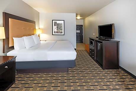 Located along Interstate 30, this Mt. Pleasant hotel is 1 mile from access to Lake Tankersley. Featuring a heated indoor pool and hot tub, each room includes a flat-screen cable TV. Free Wi-Fi is available in every room at La Quinta Inn & Suites Mt. Pleasant. Guests can enjoy the convenience of an in-room microwave, refrigerator, and tea and coffee-making facilities. Eggs, sausage, waffles, and more are served as part of the daily continental breakfast at Mt. Pleasant La Quinta Inn & Suites. An on-site fitness center and laundromat facilities are available to all guests. Mount Pleasant Country Club is 4 miles from this hotel. New City Lake can be reached in a 7-minute drive.