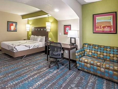 This Grand Prairie hotel is a 15-minute drive to Six Flags Over Texas amusement park. This modern hotel offers an outdoor pool. ATT Stadium is 9.1 mi away. La Quinta Inn & Suites Dallas Grand Prairie Southis pet friendly and offers a 24-hour front desk and childcare services. Breakfast is served daily and an evening reception is provided on select weeknights. Also available is a gym and business center. Each guest room at the La Quinta Inn is equipped with a 42-inch flat-screen TVs, microwave, and refrigerator. Deluxe bathroom amenities and a large work desk are also provided for added convenience. Downtown Dallas is a 20-minute drive from the Grand Prairie South La Quinta hotel and is where guests can visit the Dallas Convention Center and Museum of Art. Joe Pool Lake is minutes from the hotel and offers picnic areas, hiking, and swimming.