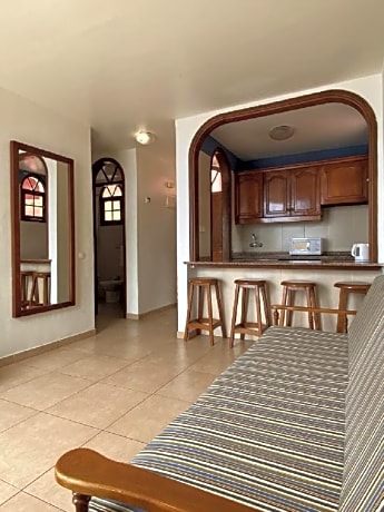 On the Costa Adeje, in the south of Tenerife, the smart and modern Laguna Park 2 apartment complex has excellent on-site facilities, including an outdoor swimming pool. Spend the day sunbathing by the swimming pool. There the children can take a dip in the cool waters of the pool or play in the on-site game room. Laguna Park 2 Tenerife is located just a short walk from the beach, so after a wholesome breakfast in the morning, you can head down to the beach with the whole family. Laguna Park 2 apartments in this complex has a lounge area, an American-style kitchen, where you can prepare your own meals, and a balcony, where you can soak up the sun in privacy or enjoy the views.