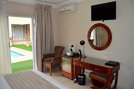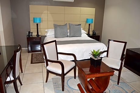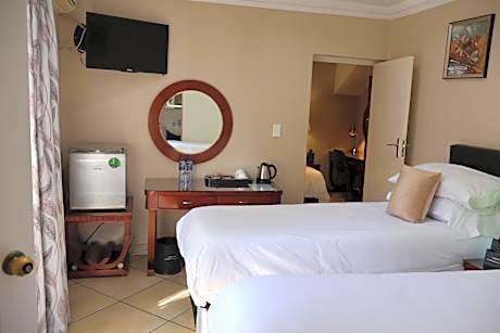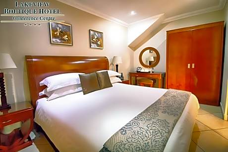 Offering free WiFi and self catering facilities, Lakeview Boutique Hotel & Conference Center is located in Farrarmere, Benoni. The property is a 10-minute drive from OR Tambo airport and features views of the Homestead Lake. The rooms feature air conditioning, satellite TV, a seating area and tea-and-coffee making facilities. Each one comes with a hairdryer and refrigerator. Lunch and dinner can be arranged at Lakeview at an additional charge. At Lakeview you will find a 24-hour front desk, meeting facilities, BBQ facilities and a garden. An array of activities can be enjoyed on site or in the surroundings, including cycling and fishing. There is also a day spa and massage facilities on offer. An airport shuttle is available at a surcharge and Benoni Country Club is 6.2 mi away.
