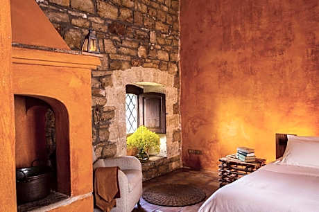 Features a satellite flat-screen TV, air conditioning and a fireplace.