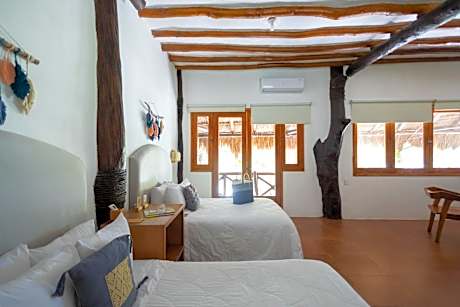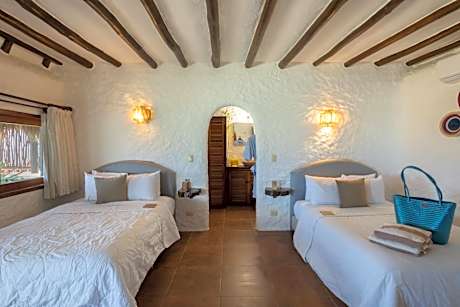 This boutique hotel is located on the secluded island of Isla Holbox in front of the ocean. The hotel offers ocean views, spa, ironing, paddle boats, kayacs, etc. Subject to availability and additional charge. The rooms at Las Nubes de Holbox feature air-conditioning and a balcony. Private bathrooms with showers are also included in each accommodations. Some accommodations offers ocean views. Amenities, such as soft bathrobes, safety deposit boxes and hairdryers are also included. Guests at Las Nubes de Holbox can arrange a boat tour of the island or go snorkeling at Cabo Catoche. Massage services are offered at the Orquidea Spa. El Sabor de las Nubes restaurant at the Las Nubes de Holbox serves breakfast, lunch and dinner. Please note this property will offer christmas and new years eve dinners, with extra cost, for furhter information please do contact the property.