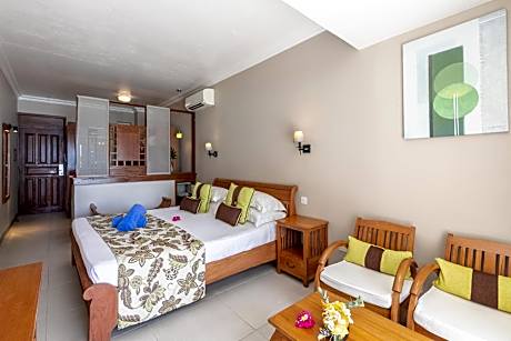 Situado en Blue Bay, a 2 minutos a pie de la playa de Blue Bay, Le Peninsula Bay Beach Resort & Spa ofrece alojamiento con piscina al aire libre, aparcamiento privado gratuito, gimnasio y jardín. El establecimiento ofrece zona de playa privada, instalaciones para practicar deportes acuáticos, salón compartido y terraza. Ofrece wifi gratis en todas las instalaciones, sauna y karaoke. Las habitaciones cuentan con aire acondicionado, escritorio, hervidor de agua, nevera, caja fuerte, TV de pantalla plana y baño privado con ducha. Todas las habitaciones incluyen armario. Le Peninsula Bay Beach Resort & Spa ofrece desayuno buffet o americano. El restaurante del alojamiento está especializado en mariscos y cocina local e internacional. Le Peninsula Bay Beach Resort & Spa cuenta con un parque infantil. En este hotel de 3 estrellas se puede jugar al ping pong y a los dardos, y la zona es ideal para practicar windsurf y snorkel. El personal de recepción habla alemán, inglés y francés y está disponible las 24 horas. La estación de autobuses de Mahebourg está a 5,8 km del hotel, el campo de golf Le Touessrok a 38,5 km y el aeropuerto Sir Seewoosagur Ramgoolam a 2 km.