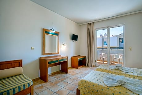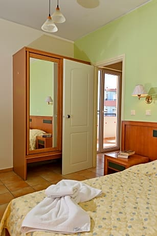 This comfortable hotel is just 50 meters from Rethymno's beautiful sandy beach, perfect for sunbathing and swimming. The old town, with its quaint shops and Venetian Harbour, is an easy 800-meter stroll away. Guests enjoy convenient access to the area's main attractions. The hotel features a pool and bar, along with a spacious, colorful lounge and a classic dining area. All rooms are bright and airy, with comfortable beds and private bathrooms including a shower and hairdryer. For added convenience, main services (reception, bar, and restaurant) are available at the sister hotel, Lefkoniko Beach, located just across the road.