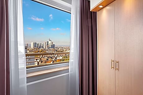 Con una ubicación céntrica en el animado distrito de Sachsenhausen de Fráncfort, este impresionante hotel rascacielos ofrece un alto nivel de confort y magníficas vistas del horizonte de la ciudad. Recientemente renovado en 2024, el Leonardo Royal Hotel Frankfurt ofrece el alojamiento ideal para quienes visiten Fráncfort en una escapada urbana, un viaje de negocios o una feria comercial. Dispone de 480 plazas de aparcamiento interior de pago. El hotel se encuentra a solo 20 minutos del aeropuerto internacional de Fráncfort. Desde aquí, se puede llegar fácilmente en coche o transporte público a las principales zonas comerciales y atracciones culturales, así como al recinto ferial de Fráncfort. Los huéspedes pueden disfrutar de un abundante desayuno en el restaurante Vitruv, donde también se pueden reservar mesas para el almuerzo y la cena. El bistró Leo Lounge ofrece aperitivos, postres y cócteles, mientras que el Leo Sportsbar sirve platos rústicos de temporada y una amplia selección de cervezas. Disfrute de las diversas instalaciones deportivas y de spa del hotel, o explore los innumerables bares y discotecas de los alrededores de Sachsenhausen. El acceso inalámbrico a Internet está disponible por un cargo adicional en todo el edificio.