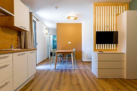 Appart'Hôtel Les Lofts du Grand Lac de Lozère enjoys a location in Langogne, 27 miles from Centre Culturel et de Congrès Pierre Cardinal and 28 miles from Le Puy Cathedral. This condo hotel features free private parking, a mini-market, and free Wifi. Outdoor seating is also available at the condo hotel. The accommodation comes with a fully equipped kitchen with a microwave and coffee machine, a flat-screen TV, and a private bathroom with shower. A fridge, a stovetop, and kitchenware are also offered, as well as a kettle. At the condo hotel, units include bed linen and towels. Guests are welcome to eat at the on-site family-friendly restaurant, which is open for dinner and brunch. Guests at Appart'Hôtel Les Lofts du Grand Lac de Lozère will be able to enjoy activities in and around Langogne, like skiing, hiking, and walking tours. Saint-Michel d'Aiguilhe Church is 28 miles from the accommodation, while Domaine de Barres Golf Course is 2.4 miles from the property. Le Puy – Loudes Airport is 30 miles away.
