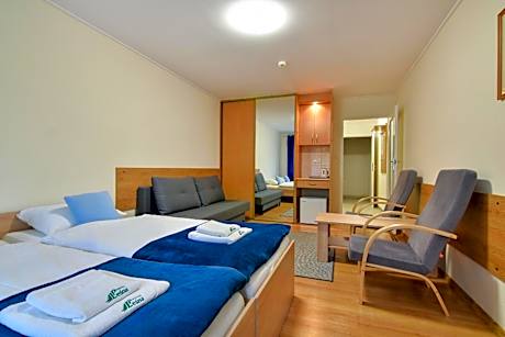 Offering a garden, Leśna Przystań offers accommodations in Rewal. The property is around a 5-minute walk from Rewal Beach, 30 miles from Town Hall, and 30 miles from Kołobrzeg Railway Station. Private parking can be arranged at an extra charge. At the resort village, all units have a wardrobe. The rooms have a kettle, a flat-screen TV, a safety deposit box, and free Wifi, while some rooms also offer a balcony. At the resort village, the units have a private bathroom and bed linen. Outdoor play equipment is also available at the resort village, while guests can also relax on the sun terrace. Kolberg Pier is 30 miles from Leśna Przystań, while Kołobrzeg Lighthouse is 31 miles from the property.