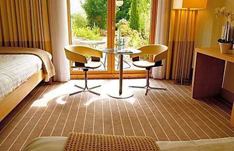 This room has a bathroom with a walk-in shower and also features an LCD TV, luxury toiletries and tea/coffee-making facilities. All rooms have views across the gardens or surrounding landscapes.