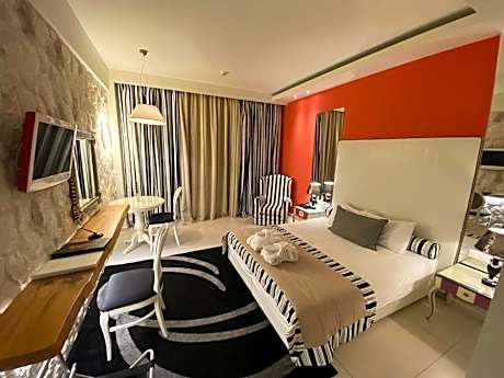 Litohoro Olympus Resort Villas & Spa is in the Plaka area of Litohoro, only 295 ft from the beach with a view of Mount Olympus. It is surrounded by a garden with organic products. Free Wi-Fi is provided throughout the property. The spacious and sunny rooms open to a balcony or patio with sea or mountain views. Each is modern with a sitting area with a luxurious armchair. Facilities include air conditioning and a 32-inch LCD satellite TV. Villas with a private pool and a fireplace are also available. Greek and Mediterranean cuisine are served at the main restaurant Elia and the Gourmet Restaurant, which features a magnificent sea view. Drinks and refreshing cocktails are featured at the Café Bar. Aphrodite Private Spa features 2 internal heated pools with hydro-massage jets, sauna and Relax Beds facilities. A gym and 2 private massage rooms and many body treatments are also available. Litohoro Olympus Resort Villas & Spa is 2 miles from Litohoro and only just over 1 mile from Mount Olympus National Park. The city of Katerini is 7.5 miles away. Free private parking is available on site.