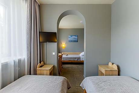 The centrally located Hotel Liva is Liepaja’s largest hotel and is within walking distance of Liepaja's main attractions. Liepaja’s sandy beach is a 10-minute walk away from the hotel. The hotel's Restaurant Upe is one of the top restaurants in town. A healthy and hearty buffet breakfast is offered there. Delicious cuisine is served during lunch and dinner. The restaurant bar has the longest bar counter in the Kurzeme region and offers a wide assortment of beverages. Hotel Liva's rooms are comfortably and individually furnished with a seating area and a work desk. The private bathroom is equipped with a hairdryer and toiletries. Depending on the location of your room, you can enjoy either the view of the famous St. Trinity church or of the lovely Square of Roses. The Liva's services include a guide service, as well as discounts for various recreation and leisure facilities, such as restaurants, cafés, fitness centers, beauty salons and a bowling club. Liva Hotel is a certified 3-star superior class hotel and a member of HOTREC organization.