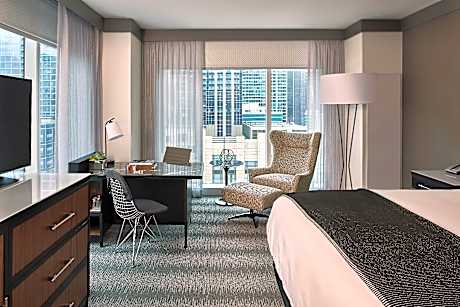 EspañolEl Loews Chicago Hotel cuenta con un salón en la azotea con vistas al perfil urbano de la ciudad, un restaurante moderno y una gran piscina cubierta. Este hotel, situado cerca del río Chicago y a 10 minutos a pie del Navy Pier, ofrece conexión WiFi gratuita. Todas las habitaciones presentan un diseño característico de Chicago y ofrecen vistas a la ciudad y al lago. Todas las habitaciones cuentan con comodidades modernas, como soporte para iPod y TV de pantalla plana de 42 pulgadas. Los extras incluyen minibar, cafetera Keurig® y ropa de cama de lujo. El Loews Chicago Hotel cuenta con numerosas y amplias instalaciones para reuniones, incluida una sala de juntas con capacidad para videoconferencias. Hay un gimnasio de última generación que está abierto las 24 horas del día. El hotel se encuentra a 1,6 km del Millennium Park, la Magnificent Mile y la estación Millennium. El aeropuerto internacional O'Hare de Chicago está a 29 km del hotel, mientras que el aeropuerto internacional Midway está a solo 19 km. La tarifa de destino incluirá lo siguiente: - $10 de crédito Uber por estadía (válido durante la estadía en el hotel y solo en el área de Chicago. Se activa al momento del check-in y vence a las 4:00 p. m. del día de salida) - $10 de crédito diario para alimentos y bebidas - 10 % de descuento en entretenimiento local en Pinstripes, Big Bus Tours y Volare - Wi-Fi premium diario