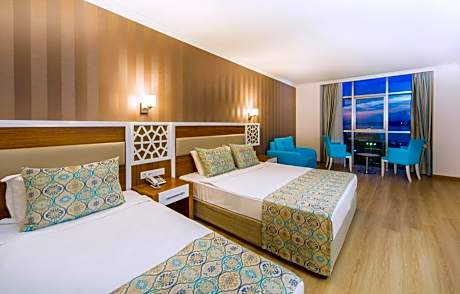 Lonicera Resort & Spa Hotel offers all-inclusive resort accommodations along the famous Incekum beach, in Fugla Bay. The hotel features a sandy private beach by the Mediterranean Sea. Boasting , 4 outdoor pools, 1 indoor pool and 1 entertainment pool with 19 water slides, spacious garden and a mini zoo Lonicera Resort & Spa features free WiFi. All rooms are equipped with a flat-screen satellite TV, air conditioning and a balcony. Featuring a shower, private bathroom comes with a hairdryer and free toiletries for your comfort. Rooms also include a mini-bar. Daily breakfast, lunch and dinner are served in buffet style. Guests can enjoy selective dishes at the hotel's seafood and Turkish à la carté restaurant, fast food service at certain times a day, patisserie and fruit bar during the day. The on-site bar is ideal for sampling variety of beverages. Lonicera Resort & Spa Hotel provides a wide range of activities. Entertainment team arranges night shows and live performances 6 days a week. There are tennis courts, water aerobic sessions, water polo games, boccia, dart, table tennis, beach volleyball and more. Special activities are offered for children at the hotel's Mini Club and Mini Disco. Lonicera Resort & Spa Hotel offers all-inclusive resort accommodations along the famous Incekum beach, in Fugla Bay. The hotel features a sandy private beach by the Mediterranean Sea. Boasting, 4 outdoor pools, 1 indoor pool and 1 entertainment pool with 19 water slides (10 slides for child, 9 slides for adult), spacious garden and a mini zoo Lonicera Resort & Spa features free WiFi. You can relax at hammam, sauna and steam room. A fully-equipped fitness center is also available. Antalya Airport is 65 mi from the property. The nearest airport is Gazipasa - Alanya Airport, 39 mi away.