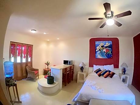 Mar y Sueños Suites is located 1312 feet from Sayulita Beach and 0.6 mi from Sayulita main square. It features a roof-top terrace with ocean, a hot tub views and a garden with swimming pool and Hot tub. All studios include free WiFi, cable TV and DVD, air conditioning and a balcony.They also have microwave, coffee maker, toaster, kitchenware, fridge and stove. The bathrooms come with shower. Guests at Mar y Sueños Suites can find shops, restaurants and a variety of meal options within 328 feet from the property on the way to Sayulita center. Barbecue facilities on site are also available. There is daily on-site staff and activities like snorkeling, surfing and motorcycle rental can be found at the beach. Laundry and shuttle service can be arranged for a fee. This property is 11 mi from Punta Mita Beach and 30 minutes’ drive from Puerto Vallarta International Airport.