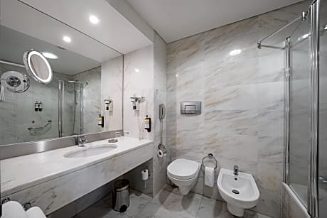 This air-conditioned triple room features free WiFi, a flat-screen TV, a safety deposit box, a mini-bar and a private bathroom with a shower, a hairdryer and free toiletries
