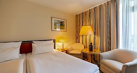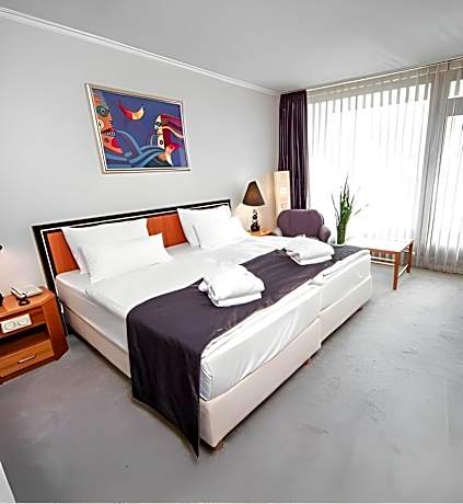 This hotel is located next to the Stadtgarten Park in central Gelsenkirchen. It offers well-equipped rooms and a cozy pub. All of the comfortably furnished rooms at the PLAZA Hotel Gelsenkirchen have satellite TV, a loggia and a modern bathroom. WiFi and wired internet are provided free of charge for overnight guests. The PLAZA Hotel Gelsenkirchen serves a sumptuous daily buffet breakfast. International and regional specialties are available in the country-style pub with terrace. The area around the hotel offers numerous and varied sights and attractions such as CentrO Oberhausen Shopping Mall (11 mi), Movie Park Bottrop (12 mi) and many more. The Veltins-Arena football stadium is less than 3.1 mi from the PLAZA Hotel Gelsenkirchen.