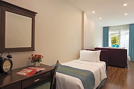 At MARO Hotel, exceptional service and top-notch amenities create a memorable experience for guests.Complimentary internet access is available in the hotel to ensure you stay connected during your visit. Arrange your trips to and from the airport using the hotel's convenient transportation services booking.Discover the wonders of Hanoi with ease by utilizing the services provided by taxi, car hire and shuttle. For guests with their own vehicle, parking facilities are provided.Continuously receive the support you require through front desk amenities such as concierge service, luggage storage and safety deposit boxes.At the hotel, their ticket service and tours is also capable of assisting with booking tickets and securing reservations for entertainment and adventures. Always look your best in your preferred attire with the dry cleaning service and laundry service provided at MARO Hotel.Desire to unwind? Make the most of your visit at MARO Hotel with accessible amenities such as daily housekeeping. Due to health concerns, smoking is strictly prohibited within the entire premises of hotel.Accommodations come equipped with all the conveniences required for a restful night's slumber.A selection of rooms feature linen service, blackout curtains and air conditioning to ensure your comfort and convenience. A few accommodations at MARO Hotel also include unique design elements like a balcony or terrace. A few chosen rooms are equipped with television and cable TV to ensure guest amusement.In certain rooms, the hotel offers visitors access to a refrigerator, a coffee or tea maker, bottled water, instant coffee, instant tea and mini bar. In the hotel, certain guest bathrooms come equipped with essential bathroom amenities, such as a hair dryer, toiletries and bathrobes, ensuring a comfortable stay for guests. An additional advantage for guests is the executive lounge, which offers an outstandingly cozy and excellently furnished environment for relaxation. A delightful breakfast is the perfect way to begin your day, and at MARO Hotel, you can always indulge in a scrumptious meal on-site.