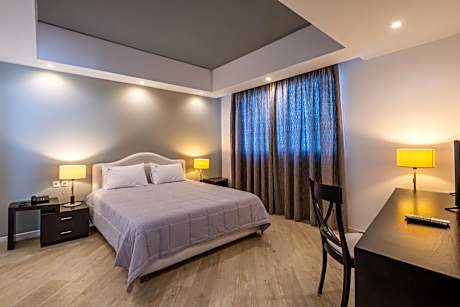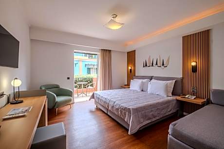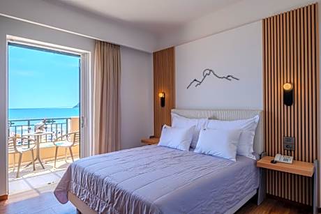 Overlooking the clear blue waters of the Ionian Sea and over 3.1 mi of golden sandy beach, the recent refurbished Mediterranean Beach Resort lies on Laganas Bay. The 5-star resort features a sea-facing pool and a fully equipped spa center with sauna and hammam. Last renovation was completed on May 2025. With a separate children’s section, the pool is surrounded by free sun beds and umbrellas. The organized sandy beach is also equipped with sun beds and umbrellas, and there is a water sports center nearby. Resembling a traditional Ionian village, the Med Beach Resort features tastefully decorated rooms and suites. Each air conditioned room has a marble bathroom with shower, and is equipped with a satellite TV with music channel and direct-dial telephone with internet access. The a la carte pool bar-restaurant offers a selection of drinks, cocktails and ice creams. The Mediterranean Beach also has a lounge bar and an elegant restaurant. Med Beach is located about 5 minutes’ drive from Zakynthos International Airport and 15 minutes’ drive from the capital and ferry port of Zakynthos. The hotel offers free private parking. There are also extra facilities offered from the reception like Taxis, Renting cars or scooters and medical assistance on request.