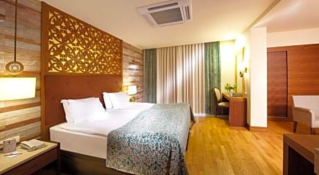 Just a few steps from the private beach, all-inclusive Melas Lara Hotel is in Lara, one of the most popular points of Antalya. The hotel features a garden, an outdoor pool with water slides, and an indoor pool. Free private parking is available on site. Air-conditioned accommodations at Melas Lara have a sitting area, flat-screen satellite TV, and a minibar. The private bathroom includes a shower, hairdryer, slippers and free toiletries. Each features a balcony offering garden views, and some also have sea views. You can work out at the gym, or get relax in the sauna. Recreational facilities include tennis, billiards, ping-pong, darts, racquetball, mini golf and water sports. You can also get massage treatments, and the little ones can have fun at the kids playground. Breakfast, lunch and dinner are served buffet style. You can enjoy your meal on the terrace restaurant overlooking the stunning view of the Mediterranean Sea. Antalya Airport is 9 miles from Hotel Melas Lara, and airport shuttles can be arranged upon request, at an extra fee.