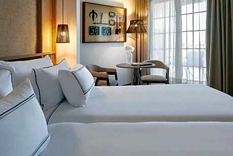Providing free toiletries and bathrobes, this double room includes a private bathroom with a walk-in shower, a bath and a bidet. The spacious double room provides air conditioning, a mini-bar, a tea and coffee maker, executive lounge access, as well as a flat-screen TV with satellite channels. The unit offers 2 beds.