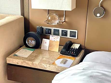 Located on the highest floors, the room provides privileged views of Jinan and features a whirlpool bathtub. It has a king-sized bed, mini-bar, 42-inch flat-screen cable TV, in-room safe, work desk, seating area with a sofa and private bathroom with soft bathrobes and shower facilities.