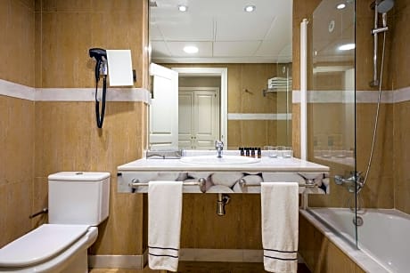 This spacious, air-conditioned room has a private balcony with views of the gardens or pool. Decorated in soft colors, it offers satellite TV and a safe.