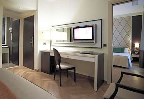 Classically decorated room with dark wood furnishings. Unit is soundproof and comes with air conditioning, LCD TV, mini fridge and free Internet access.