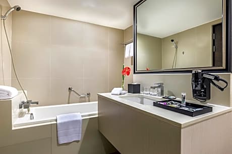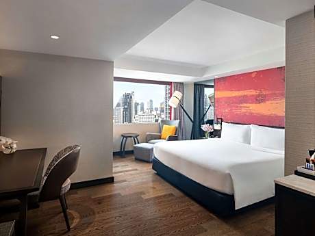 Mercure Bangkok Sukhumvit 11 provides flawless service and all the necessary facilities for visitors.Stay connected with your associates, as complimentary Wi-Fi is available during your entire visit. To facilitate your arrival and departure, you can pre-book airport transfer services prior to checking in. The hotel offers taxi amenities to assist you in discovering your desired offerings in Bangkok.When arriving by car, you'll be grateful for the on-site complimentary parking at hotel.The hotel offers reception amenities including concierge service, express check-in or check-out, luggage storage and safety deposit boxes to ensure a comfortable stay for guests.Should you require assistance, the ticket service and tours can also aid in booking tickets and securing reservations at the finest shows and events in the vicinity. Whether it's an extended stay or simply needing fresh attire, dry cleaning service and laundry service provided by hotel ensures your cherished travel garments stay spotless and accessible. Your stay will be comfortable with the presence of 24-hour room service, room service and daily housekeeping as an in-room amenity for your relaxation and enjoyment. Smoking is permitted solely in the specified smoking zones allocated by hotel. In order to ensure the utmost level of relaxation, the guestrooms feature an inviting design and are equipped with all basic necessities, creating a delightful stay experience.To ensure a pleasant stay, a selection of rooms at hotel come furnished with linen service, blackout curtains and air conditioning, all designed with your ease in mind. In select rooms, visitors can enjoy a touch of amusement with the availability of television and cable TV for their entertainment needs.Within specific rooms, a refrigerator, a coffee or tea maker, bottled water, instant coffee, instant tea and mini bar is conveniently available for your use. Understanding the significance of bathroom facilities in enhancing visitor contentment, hotel offers a hair dryer, toiletries, bathrobes and towels within a few chosen chambers. To experience refined leisure, do not miss the opportunity to drop by the executive lounge. Start your day stress-free at Mercure Bangkok Sukhumvit 11 as breakfast is made available for you on the premises.How about kicking off each day of your getaway with a delicious cup of coffee? At the hotel, relish in the invigorating taste of a freshly brewed, excellent coffee. Various excellent meal offerings at hotel ensure that enticing and easily accessible options are constantly available.Upon arrival, make sure to explore bar and nightclub to experience enjoyable evening entertainment within the premises.Throughout the day, engage in the entertaining activities available at Mercure Bangkok Sukhumvit 11.Unwind and conclude each day delightfully by stopping by hot tub and sauna, ensuring a soothing experience.Unwind by the pool at hotel and cherish a leisurely moment.Enjoy a refreshing beverage al fresco at hotel's poolside bar savoring your preferred concoction. Guests who enjoy maintaining their fitness regimen while on holiday can visit the fitness center provided by hotel.