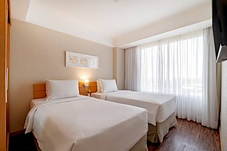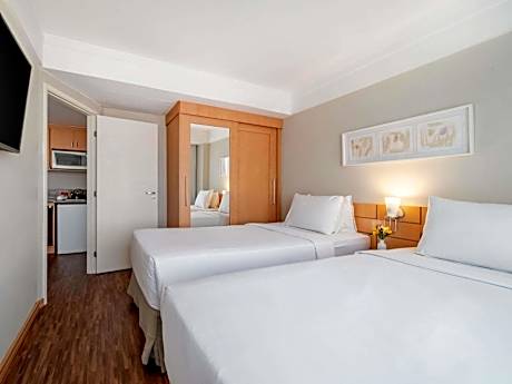 Esta encantadora propiedad ha sido durante mucho tiempo una de las favoritas en Sao Paulo tanto para viajeros de negocios como para turistas. Hay 115 apartamentos. En el centro de la ciudad de Guarulhos, la propiedad está a poco más de 1 milla del centro comercial y de los jardines botánicos Bosque Maia. A solo 6 millas del Aeropuerto Internacional y a 16 millas del centro de Sao Paulo. Hay un restaurante, piscina, gimnasio y 14 salas de reuniones. El estacionamiento y el servicio de transporte están disponibles por una tarifa.