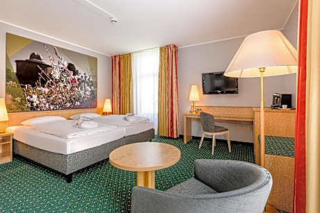 Welcome to the heart of Erfurt at the 4-star Mercure Hotel Altstadt. Enjoy our historic cuisine in the “Zum Rebstock” restaurant with characteristic Thuringian specialties and relax on our summer terrace. Our completely smoke-free hotel offers coffee and tea making facilities in the rooms, parking at the hotel and lockable storage for bicycles. Just a short walk from the famous Krämerbrücke bridge, our hotel is ideally located for exploring on foot. The main railway station is only 10 minutes away, from where you can easily reach the old town of Weimar in 15 minutes.