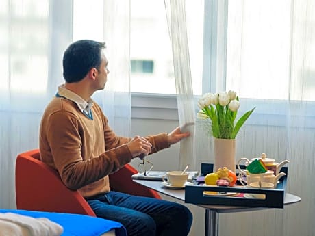 Featuring a rooftop pool with panoramic views over Nice's city center, Mercure Nice Center Noter Dame offers a 2000-m² interior garden and a shaded terrace, 1640 feet from Nice-Ville Train Station. Free WiFi is available throughout. Each air-conditioned room features a flat-screen TV, desk, wardrobe and mini-bar. Rooms have modern décor and the private bathrooms include a bath or shower and a hairdryer. Breakfast is served every morning in the spacious breakfast room. Cocktails can be enjoyed on the rooftop bar, Bella Ciela. Snacks are also available throughout the day. The hotel offers a fitness center, 2 whirlpool baths, a Skylounge Bar and 2 terraces with panoramic views over Nice. With a 24-hour reception, Mercure Nice Center Noter Dame also offers room service and luggage storage. The Promenade des Anglais is a 15-minute walk away. Jean Médecin Tram Stop is 853 feet from the hotel, and Acropolis Congress Center is 5 tram stops away. Parking is available on site for a surcharge.