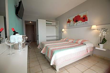 Located right on the beach in Moraitika Village, Canvas by Mitsis Messonghi features 2 adult pools and 1 mini aquapark. Corfu Town and Corfu Airport are 14 mi away. All accommodations types are built among gardens and lawns that run down to a pebbled beach. Rooms are air-conditioned, have a satellite TV, and a private bathroom with a shower and hairdryer. Hotel-owned beach umbrellas are spread along the beach free of charge and guests can rent sun beds at a extra charge. Sunbeds at the swimming pools are free of charge. The complex consists of 3 outdoor swimming pools (2 adult pools and 1 mini aquapark), several bars, a beach bar, 2 restaurants, a restaurant on the beach serving snacks, a night club, several shops and boutiques, a conference center and a play land. Waterslides are also available upon charge. More facilities include a spa center and a large choice of sport facilities. Free private parking is possible on site. License Number(s): 0829K013A0047400